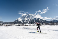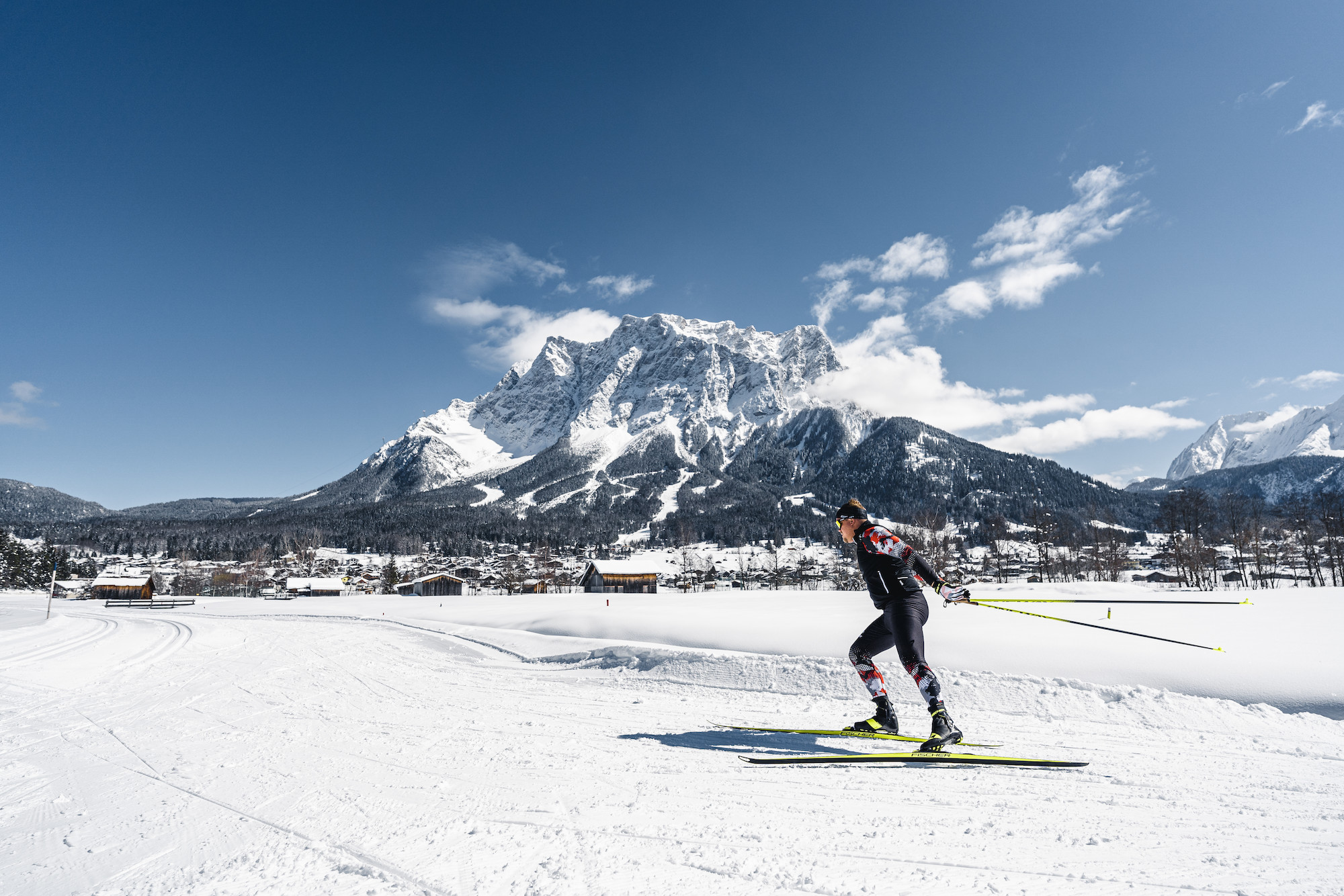 Bei frische Gebirgsluft durch glitzernden Schnee gleiten, vor dem Zugspitz-Panorama.